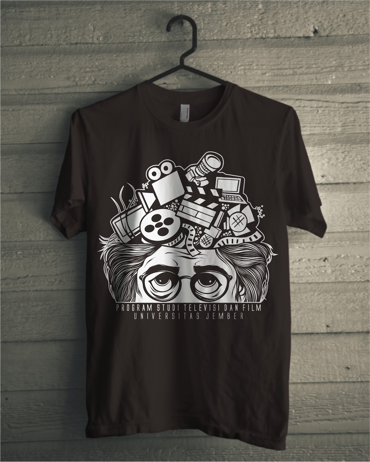 Karena Himafisi merupakan Himpunan Mahasiswa Program Studi Televisi dan Film, tentu saja desain yang diusung pada T-Shirt ini adalah tentang kehidupan mahasiswa Televisi dan Film.